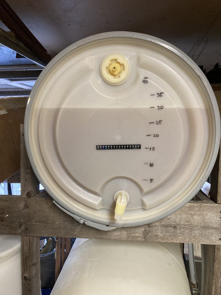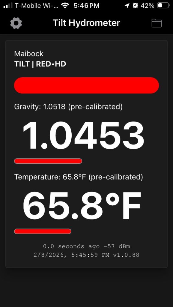 For the 60th milestone last month (LX), modern technology has been attained in the form of a digital hydrometer – a Tilt Pro Mini device. No real reason why. Something new to mess with. Maybe.