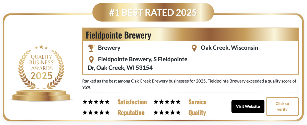 How did Fieldpointe Brewery receive this accolade? Hard work and dedication in not getting bogged down with analytical numbers and complicated procedures. Fieldpointe’s adherence to producing quality beers has made it #1 in Oak Creek in 2025. We brew for the simple pleasure of brewing beer!