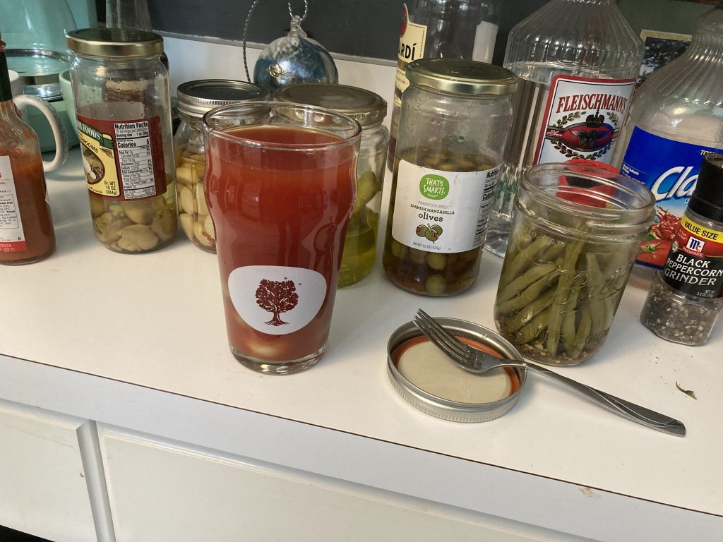 The Ghost of Christmas Present moved Supervisor Mark to open the Bloody Mary Bar 20 to 30 minutes earlier than the usual 10 AM. This suited the attendees just fine as the one guest arrived on the early side of 10 AM – apparently to get situated before all the good seats were gone. As Jerome soon realized, this really wasn’t a concern as there was plenty of personal space available to mill about as one pleased.